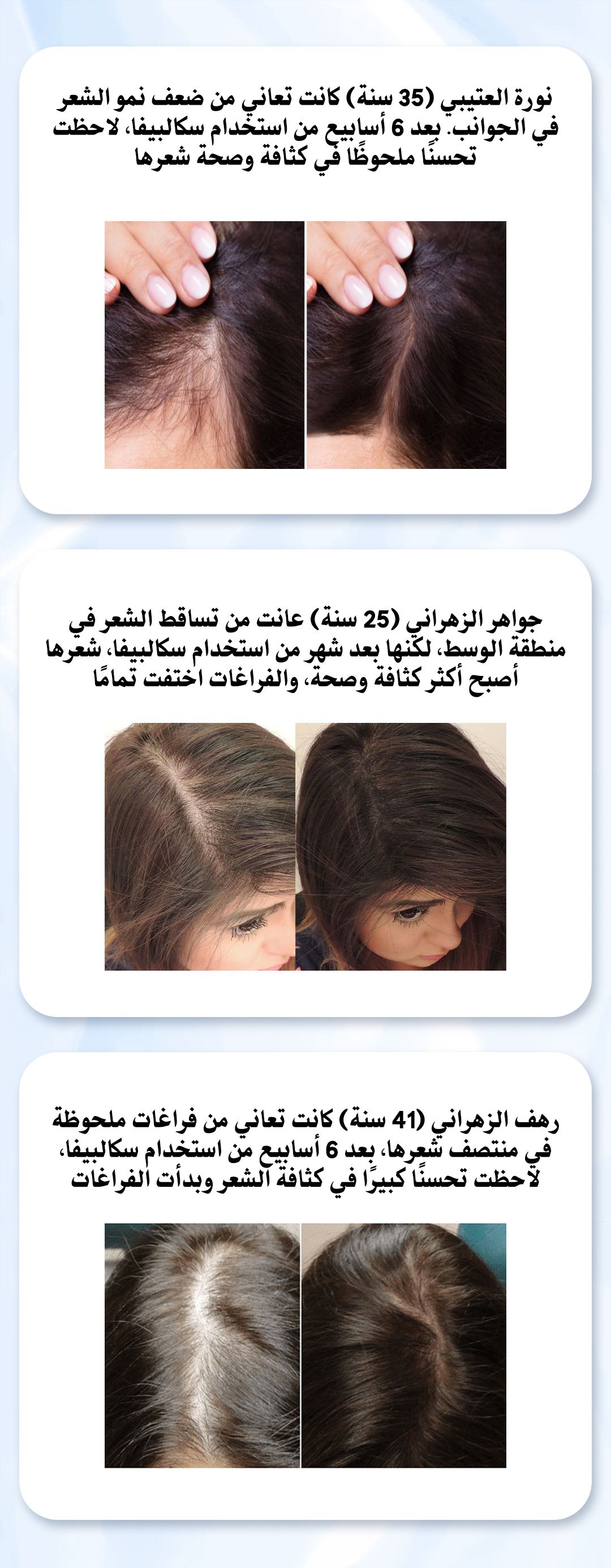 الفكرة حلوة والسيروم ممتاز، بصراحة شعري صار أحسن. مرّت علي تجارب كثيرة، بس سكالبيفا فعلاً مختلف. إذا كنت تبحث عن حل فعّال لشعرك، هذا هو الخيار الأمثل!